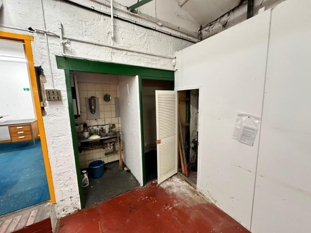 Open plan warehouse, office, storage, kitchen, wc