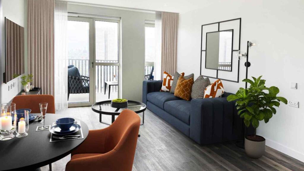 Each apartment is thoughtfully designed with full-height windows, integrated appliances, and a private balcony. You'll also have a 24-hour concierge, estate management, and a 15th floor communal roof terrace.