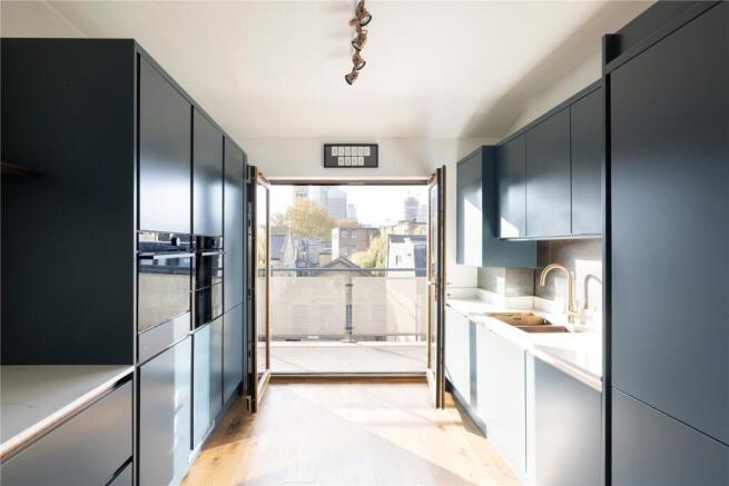 - Newly reconfigured open-plan kitchen with premium appliances and Shoreditch Church and City views