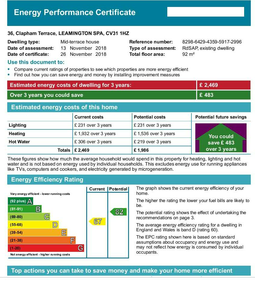 EPC 1Safety Inspection36 Clapham Terrace, Leamington Spa