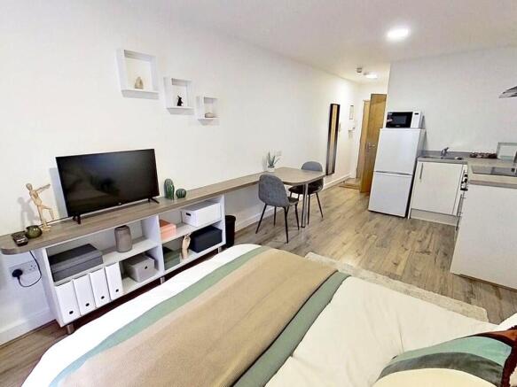Each self contained studio has been superbly designed and has a contemporary kitchen with four hobs (induction), oven, 50/50 fridge-freezer and microwave. The studio also has a double bed, individual en-suite facilities, flat screen TV and generous study and storage space. While on every floor there are free laundry facilities.