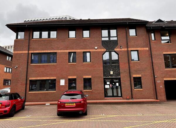 The property comprises a modern three storey office building of traditional brick construction under a pitched tiled roof.