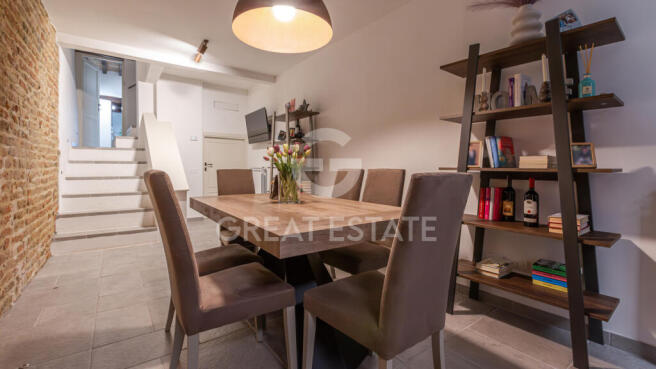 A spacious terrace, paved with light stone slabs and bordered by exposed brick parapets, provides an inviting area for relaxation and enhances the property's living appeal. The interior walls are in excellent condition, with smooth plasterwork and fresh paint that contribute to a refined atmosphere, perfectly balancing tradition and modernity. This property is ideal for those seeking an exclusive home that offers contemporary comfort alongside timeless elegance.