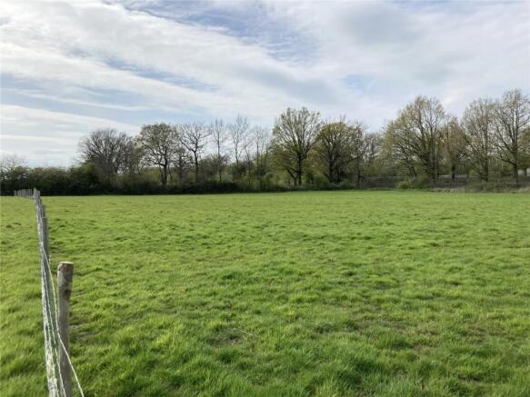 The site comprises a parcel of permanent pasture extending to approx. 7.9 acres and is newly fenced. The land is bordered by trees to the north, east and west, as well as a thicker triangle of ancient woodland protruding into the middle of the southern border. Directly beyond the tree boundaries are school grounds/playing fields to the east, the railway line to the north, and a fishing lake to the west. A thin strip of trees and small brook travels from the triangle of ancient woodland from south to north through the land, effectively creating two separate paddocks, albeit still connected in one place, and offers an attractive focal point to the middle of the parcel.