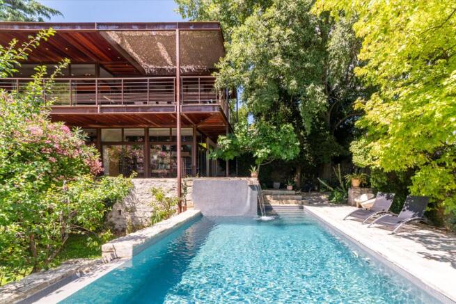 This house of approximately 300 sq m combines comfort with an innovative architectural style, this house provides the best possible quality of life. The approximately 0.46 ha of grounds boast splendid greenery and an infinity pool with a jacuzzi decorated with mosaics. The building is on three levels: the garden level contains a bedroom suite, a workshop and a study. The ground floor comprises a large, light-filled living room, a modern fitted kitchen and a dining room, as well as an bedroom suite looking out on the garden. Two suites on the first floor share a terrace offering an exceptional view. The building is an immaculate blend of old and new, combining timber, steel and stone. Located between the life of the town and the peace of the countryside, It is the perfect summer escape.