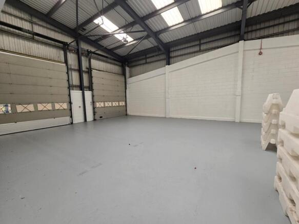 The unit is of modern construction and provides a clear span warehouse with part brick and profile metal sheet clad elevations beneath a pitched profile metal sheet roof incorporating translucent panelling.