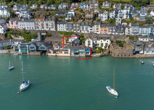 From South Town, a gate and private steps lead down with access to the cottage and garden with views across the River Dart and Kingswear. Steps continue to the boathouse kitchen door and courtyard garden with composite decking and water feature, an ideal area for outside entertaining. Access to the ground floor boathouse and the cottage. To the rear of the boathouse from the living room is a balcony enjoying stunning uninterrupted panoramic views of the River Dart, Kingswear, upstream and out to sea. The ground floor offers further outside space with steps down the water and a 6.5 metre running mooring.
