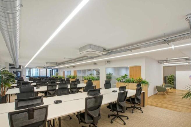 The first floor office provides ‘Plug & Play’ space with 58 open plan desks, 4 meeting rooms, 2 VC rooms and a generous kitchen & breakout area.