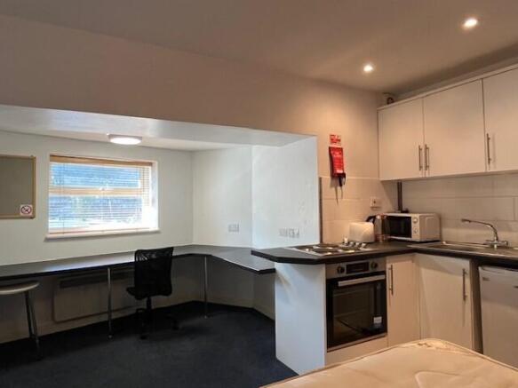 This cosy studio flat is located on St Lawrence Road is situated in the perfect location, just a short walk from Mutley Plain and Plymouth University Main Campus! The studio is fully furnished with a double bed, desks, wardrobe, kitchen and a communal laundry room.