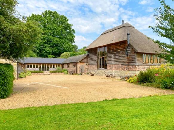 Externally, the property is a picturesque partly thatched barn with a combination of brick and sandstone construction, as well as a most impressive oak beamed integrated structure, which in its own right appears throughout the internal décor as an enchanting feature. Numerous rooms are hosted by extensive beamed vaulted ceilings and beamed walls, in addition with a fine example of a Wealden oak staircase and suspended landing.