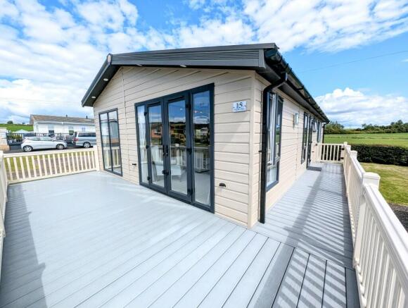 The beautifully presented accommodation incorporates a tasteful country style neutral colour scheme throughout with high quality contemporary fixtures and finishings. The generous open plan living area enjoys panoramic natural light and countryside views. The spacious sitting room area has a cosy feel with a fireplace and wood burner effect electric fire and has French doors opening to the sun deck. The stylish kitchen has a breakfasting island and a full range of integrated appliances, and the bright dining area has a large picture window to enjoy the open outlook. A hallway off the lounge gives access to two bedrooms and a bathroom. Bedroom 1 is a double room with a modern en suite shower room, Bedroom 2 is a twin room with integrated storage and the family bathroom is fitted with a modern 4 piece suite.