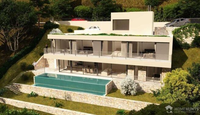 The project is distributed over 3 levels:;At street level we find spacious garage with entrance hall and access to the lift that connects the 3 floors.; On the middle floor there are 4 double bedrooms with access to the terrace, two of them en suite with dressing room, and a complete bathroom. From the 4 bedrooms you can enjoy impressive sea views and have access to the large and sunny terrace.; On the lower and main floor there is a large and sunny living-dining room with open plan kitchen with spectacular views, a complete bathroom, a double bedroom, a laundry room and a machine room.; Large windows give access to the fantastic outdoor area with a 40 m2 infinity pool, terraces and the extraordinary views that this exclusive villa enjoys.