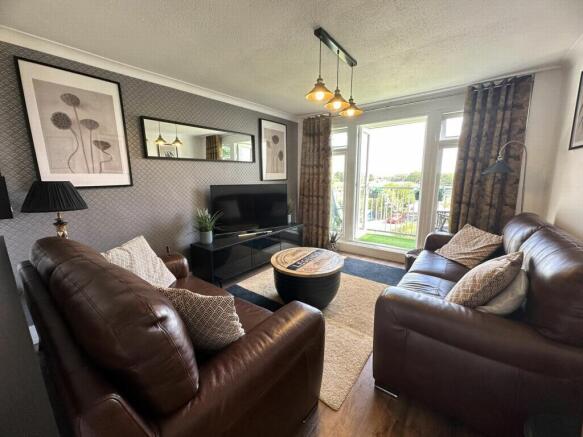 LOUNGE: 4.08m x 3.30m (13'5" x 10'10"), Door into lounge with uPVC double glazed french doors with side windows looking out to the balcony and the wonderful open views towards the Exe estuary and beyond, TV and telephone points, electrical sockets with USB points, wall mounted electric heaters and laminate flooring.