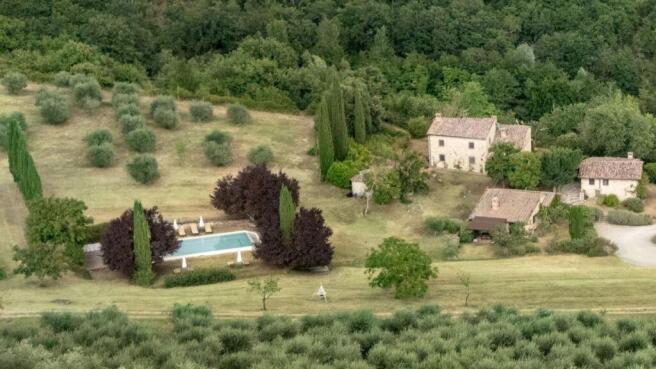 Type: 1160 sq m/12486 sq ft ancient chianti farmstead with a stone villa on three levels, 2 guest cottages, private chapel. 2 annexes, garden with swimming pool, organic olive grove and forest