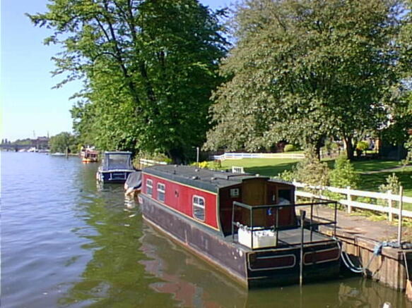 The riverside mooring is situated on the bank of the Thames at the border of Hampton Wick with Teddington at Broom Park.