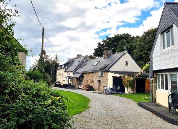 A gated entrance opens onto a gravel driveway to the first property, the Main house, which comprises, on the ground floor: