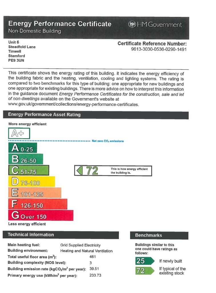 Unit 6 is located at Tinwell Business Park which is an established commercial site with a mixture of light industrial and office users. The site is circa 2 miles from Stamford and within very easy reach of the A1 road network which links the north to London. Peterborough is situated circa 16 miles from the site, which provides mainline connections to London Kings Cross in approximately 50 minutes. Stamford train station connects to Peterborough train station, taking 10 minutes by train. Stamford has many local facilities such as shops, pubs and other local services.