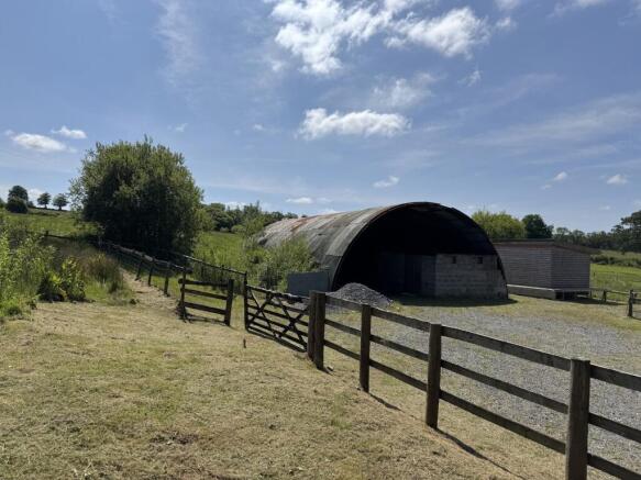 Corrugated roof. 3 open loose boxes and 2 enclosed stables. Separate tack/general purpose store area.