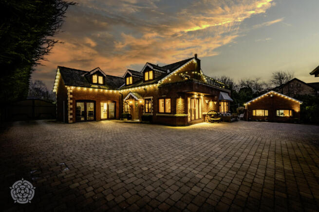 Approached via an impressive large sweeping driveway, secured by electric gates, this home sits within meticulously landscaped gardens, creating a picturesque setting. The external south facing grounds have been thoughtfully designed to provide both beauty and functionality, featuring a raised patio area perfect for outdoor dining and entertaining, as well as a dedicated garden area for children’s play, making it an ideal family home. The log cabin is a fantastic addition to the outdoor space, a perfect room for relaxation, hobbies or entertaining guests.