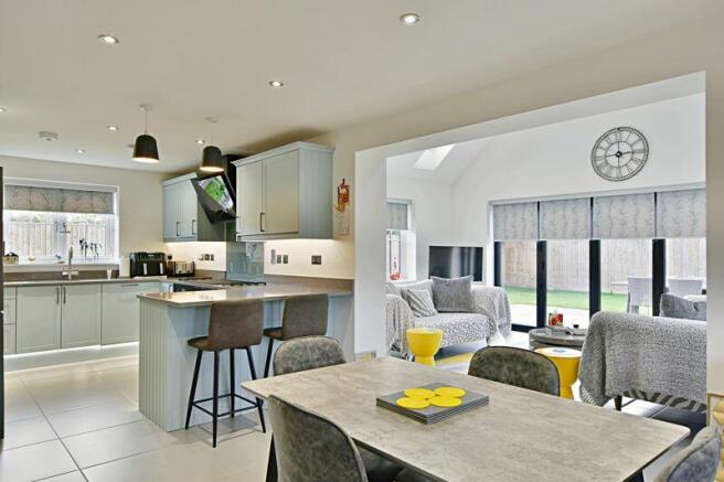 Having a 3 panelled bi-folding door, double entry into the lounge with underfloor heating and a electric log burner style fireplace.