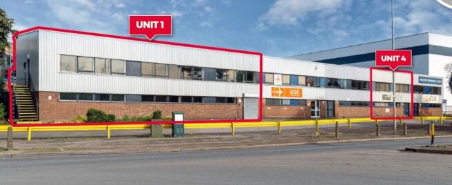Unit 1 is a modern industrial / warehouse unit of steel portal frame construction with part brick / profile clad elevations beneath an insulated pitched roof. Benefiting from purpose-built offices, a full height loading door with allocated parking to the front and rear with a large shared yard. The unit will be refurbished to the same standard as the recently refurbished Unit 3.
