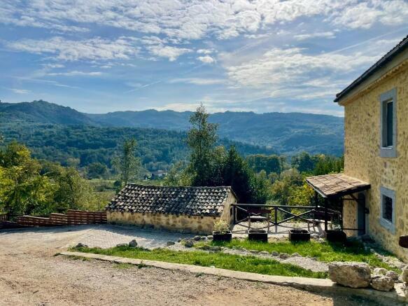 The house is spread over two storeys. Many of the large, light rooms feature original wood beam ceilings and the original stone door lintels. As well as the elegant modern kitchen, there is a rustic style outdoor kitchen on the verandah, ideal for bbq and al fresco dining. The large terraces and patios all overlook the valley.