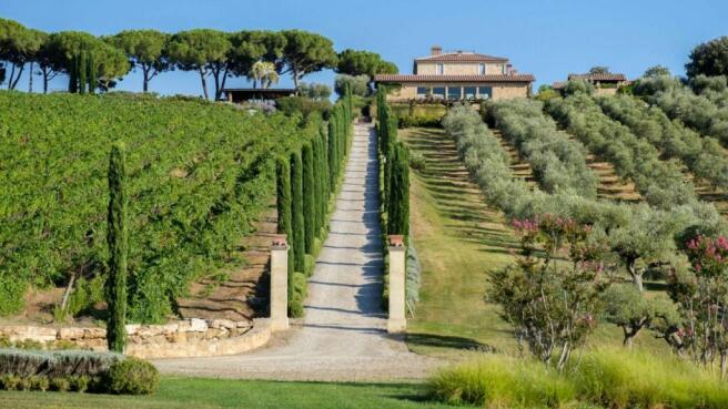 Luxury estate with olive oil, vineyards, charming rustic Tuscan living, sports facilities, horse riding center, heliport, for sale in Maremma, Tuscany.