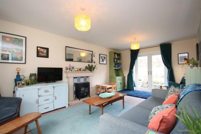 A door to the left leads to the sitting room which runs the full depth of the house and features a window to the front, double doors to the rear garden and a feature fireplace.