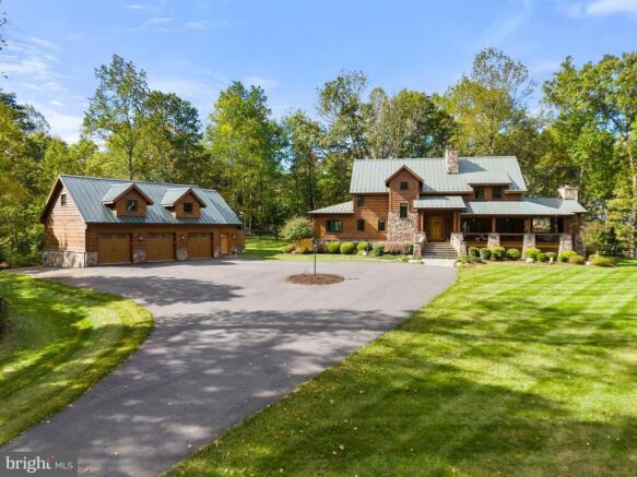 Nestled in the rolling hills of the Piedmont and Virginia's renowned wine and horse country, this 2018 custom-built home sits on 33 acres, just minutes from the Village of Orlean and an hour from our Nation's Capital. As you enter the private paved drive, flanked by trees, and pass through the gated entrance, you arrive at this magnificent estate. The craftsman log-style home features concrete log siding for low-maintenance beauty, complemented by a metal roof for longevity. A majestic cascading stone staircase, adorned with lanterns, leads you to the expansive wraparound porch with Trex-type decking, iron spindles, and mahogany handrails. A wood-burning fireplace and cathedral ceiling with heaters, recessed lighting, and a ceiling fan make this outdoor living area perfect for entertaining or relaxing. The back stone patio, with retaining walls and a hot tub, offers starry skies at night and mountain views in the winter, while a side patio features a firepit. Inside, the home showcases the finest craftsmanship and rustic elegance. As you enter through the front door, feel the heated stone floors beneath each step. The Great Room, with its 2-story cathedral ceiling and wooden beams, exudes a rustic yet modern feel. The floor-to-ceiling gas fireplace is commanding, while sunlight pours in through the arched Windsor windows. The Great Room opens into the spacious Dining Room, featuring an impressive chandelier, and flows seamlessly into the Gourmet Chef's Kitchen. This culinary haven is equipped with top-of-the-line KitchenAid appliances, and the expansive curved island with a barstool overhang and CopperSmith hammered copper range hood steals the show. Custom soft-close cabinetry complements the sleek granite countertops, which continue up the wall as a backsplash. Stand at the copper farm sink and enjoy the breathtaking views of the private, park-like backyard. The Main Hall leads to a Half Bath with stone floors, a designer vanity with granite and a vessel sink, and a Laundry Room featuring a washer/dryer and built-in dog kennels, along with a PlexiDor dog door. A barn door leads to a private wing offering an incredible flex space-perfect as a Study, Sitting Room, or Bedroom with custom built-ins. The Owner's Bedroom is a sanctuary with heated stone floors, Windsor windows, and a walk-in closet with a custom organization system. The Primary Bathroom ensuite features double vanities with quartz, heated tiled floors, a walk-in shower with a leathered quartz accent wall, a jetted tub with serene views, and a remote-controlled shade. Ascend the wooden stairs and pause on the landing to admire the custom built-ins and window seat. Arrive at the Loft, which overlooks the Great Room. From the Loft, Bedrooms 2 and 3 each feature heated floors, large closets, and upgraded en-suite half baths with vanities and commodes, sharing a luxurious spa-like bath with a separate shower and free-standing tub. The Finished Lower Level is an entertainer's dream, with a walk-out stone staircase leading to the backyard. The Rec Room has professionally stained heated concrete floors, custom built-ins, a projector/screen, and built-in speakers, flowing seamlessly into the Game Room. The Lower Level also includes an Exercise Room, a Den/4th Bedroom, a Full Bath, and ample storage areas. Additional features include a whole-house generator, an outdoor shower, a water filtration system, heated floors on all levels, Windsor windows and doors, alder wood interior doors, Starlink, and more! Outside, the 3-car oversized garage is incredible, with a finished main interior and a vast unfinished upstairs storage area that could later be converted into an apartment. The garage exterior matches the main home's craftsmanship and is equipped with a water heater, washer/dryer hookups, and a sink. The property also includes two outbuildings. This one-of-a-kind home is a masterpiece, offering the perfect countryside getaway with all the modern conveniences.