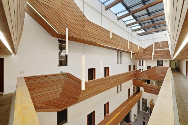 Inside, businesses benefit from a range of high-spec features designed to support productivity and creativity. Workspaces are set around a stunning central atrium, complete with 24-hour concierge service. Each unit features full-height double glazing, exposed concrete ceilings, raised access flooring, Cat 6 cabling, and contemporary pendant lighting. Tenants also enjoy access to communal amenities including fully equipped kitchens, break-out lounges, meeting rooms, showers, WCs, locker rooms, and secure cycle storage.