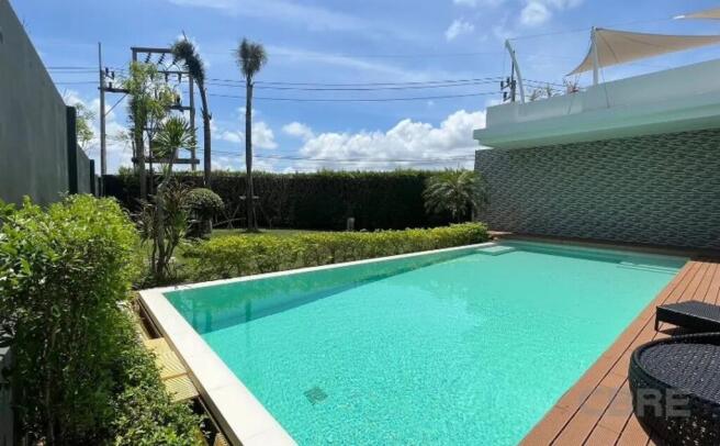 Outside of the villa, a spacious balcony awaits, ideal for hosting a barbecue party or enjoying the sky view. You can also cool off from the tropical heat in the villa?s large swimming pool and private garden.