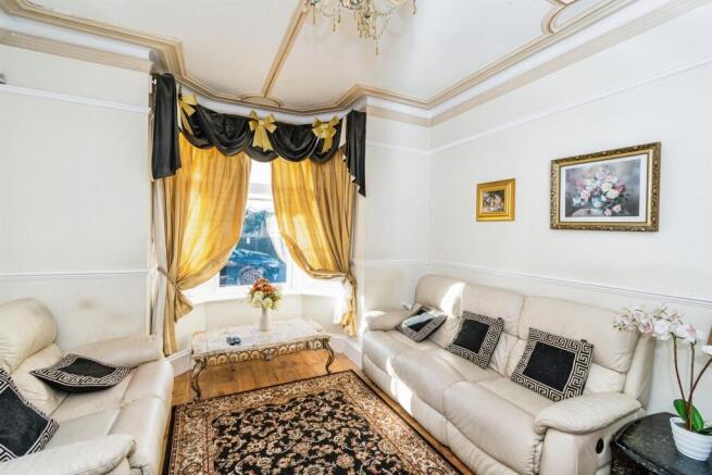 Double glazed bay front window, fireplace, laid to laminate, detailed coving;
