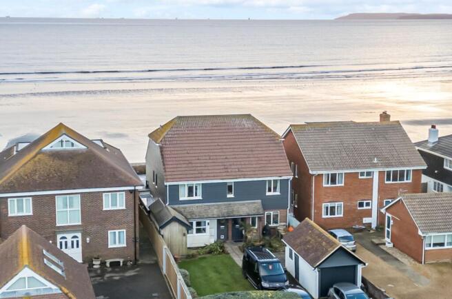 To the side of the property, there is a useful covered shower area, ideal for rinsing off after a swim, along with a small storage space perfect for bikes, surfboards, or sailing equipment. A particular highlight is the thoughtfully landscaped rear garden, designed with coastal plants and paved seating areas to make the most of the beachfront setting.