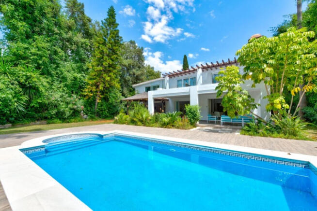 THIS VILLA COMPRISES: LARGE AND SPACIOUS LIVING DINING ROOM WITH FIREPLACE AND ACCESS TO THE COVERED TERRACE AND SWIMMING POOL; SEPARATE FULLY FITTED KITCHEN EQUIPPED WITH TOP QUALITY APPLIANCES; EN-SUITE MASTER BEDROOM WITH WALK-IN WARDROBE AND ACCES TO THE LARGE TERRACE; EN-SUITE GUEST BEDROOM; TWO FURTHER GUEST BEDROOMS SHARING A BATHROOM; A/C HOT AND COLD THROUGHOUT; CENTRAL HEATING; AND PRIVATE PARKING SPACES FOR THREE CARS.