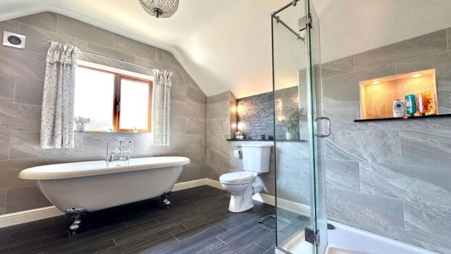 The main bathroom has been modernised and includes an walk in shower cubicle, toilet, a further roll top bath and a his and hers double vanity unit.