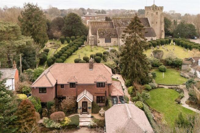 Located on Church Street, the house is approached via a private driveway bordered by mature trees, leading to a secluded front garden and parking area for several vehicles. The red-brick exterior and attractive entrance porch create a welcoming first impression. Inside, the spacious main hall leads to a well-proportioned living room, extending over five metres, with windows on three sides and double doors opening onto the garden. A cast-iron fireplace with decorative tiles provides an elegant focal point. Across the hall is a downstairs WC and the formal dining room which overlooks the garden, and opens to the kitchen/breakfast room. Beyond the dining room, an additional reception room with a conservatory-style glazed roof provides a bright space to enjoy the garden year-round, with double doors which can be opened onto the patio in the summer months.