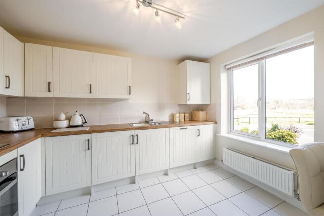 Kitchen Breakfast Room - 3.44 x 2.74 (11'3" x 8'11") - With a door leading from the entrance hall, tiled floor, range of fitted wall and base units, worksurfaces over with tiled splash back, integrated fridge and freezer, integrated oven with gas hob above, one and a half bowl stainless steel sink and drainer, integrated dishwasher and washing machine, breakfast bar, cupboard housing wall mounted boiler, extractor fan, double glazed window to front and a central heating radiator.