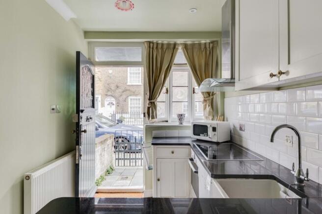 An ingeniously assembled ground floor shower room and WC sit between this and one of the two bedrooms with its industrial looking wood solid wood flooring and continued arts and crafts theme. A small light well with a sliver of outside space is accessed through rear glazed double doors.