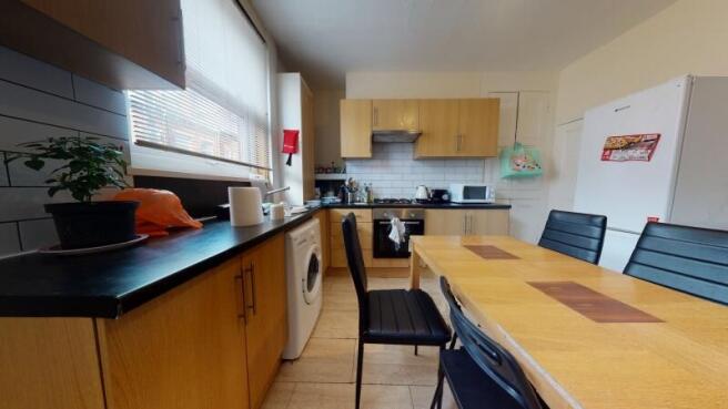 * really spacious communal areas. The kitchen benefits from a dining table + chairs, washing machine and oven + gas hob.