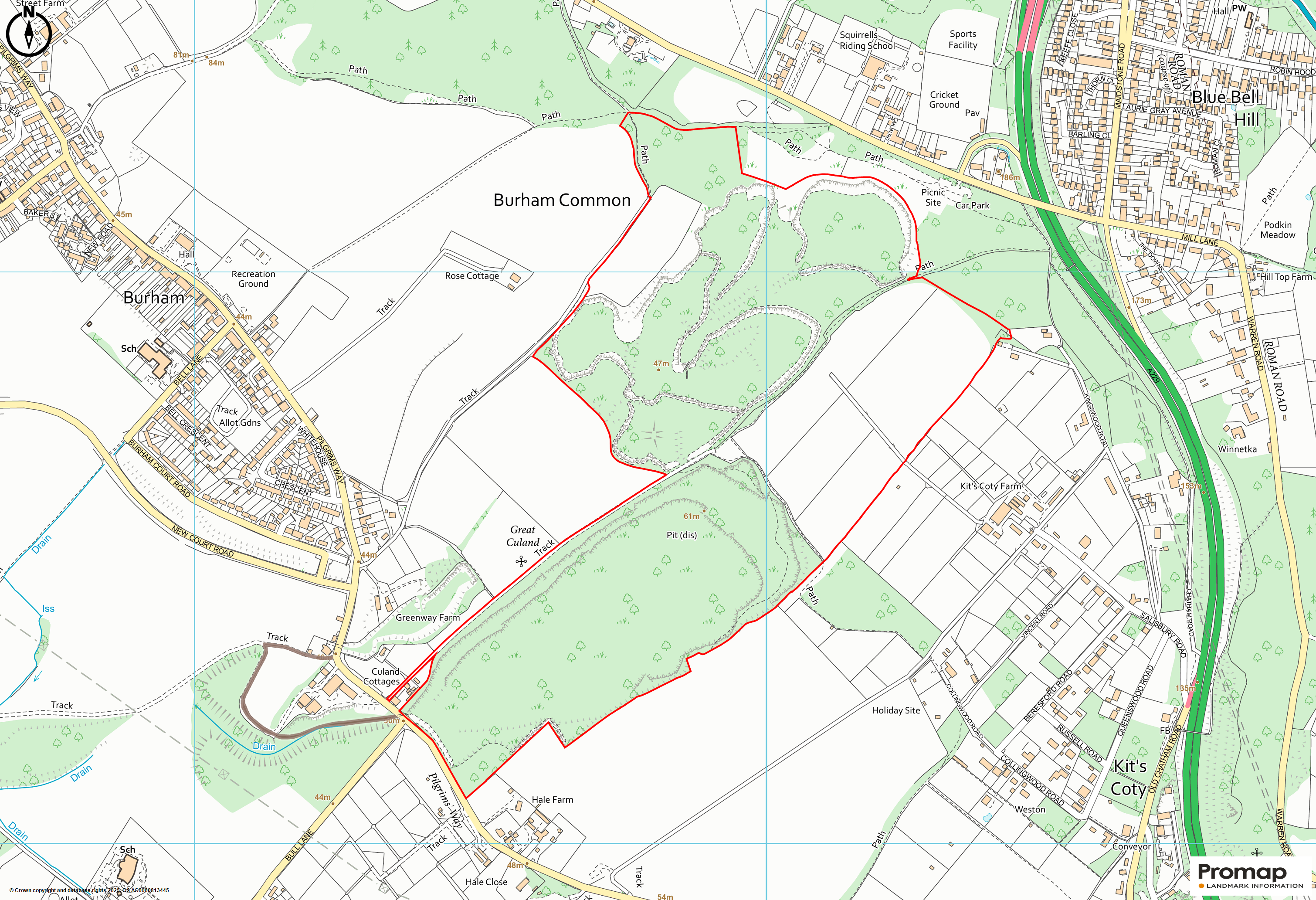 ACCESS: The property is accessed via a track off the Pilgrims Way. A secondary access is available via a right of way which will be granted along the track marked brown on the sale plan, the route of which is through the woodland and bridge under the road into the lower quarry.