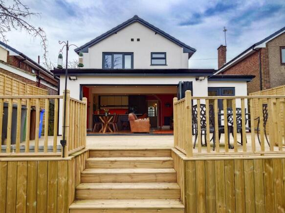 Stunning throughout, the property features a remarkable ground floor entertaining space with a wide expanse of bifold doors overlooking a tiered garden, with decking, artificial grass, and a gravelled area directly bordering the tree line to the rear of West Park.