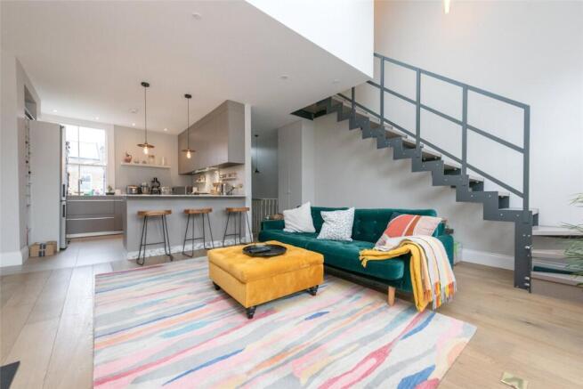 Split over two levels this apartment comprises of a rear double bedroom with built in storage that also houses the utilities. Family bathroom with a large sky light flooding light into the room. The reception room has double ceiling height having been opened up and vaulted to create a real wow factor room. The well equipped kitchen houses two overs and integrated appliances. Upstairs you will find the master bedroom with walk-in wardrobe and en-suite.