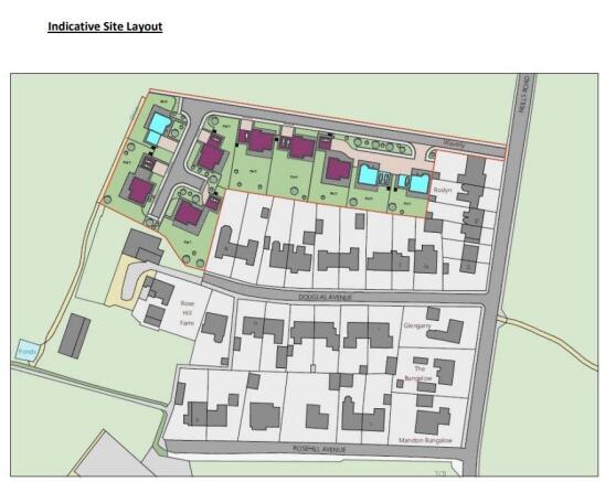 number of trees within the site and some larger trees scattered along boundary edges amongst hedgerows. The site is contained by open and flat agricultural fields to the north and west, whilst the east and south is contained by residential dwellings and the south west is Rose Hill Farm. The site appears generally flat with views north and north west into the flat open agricultural fields. Douglas Avenue is a small hamlet of dwellings west of Neills Road with