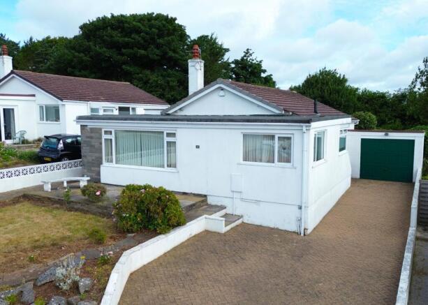 Garden area with ample driveway parking space. The property is accessed via the left side of the bungalow and there is a manual up and over door on the right hand side which leads into the