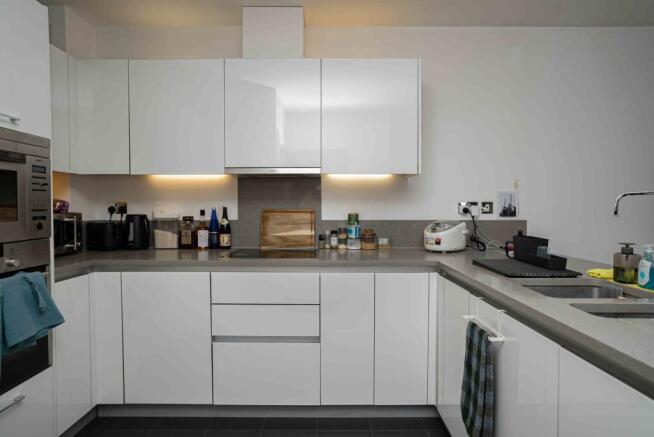 This two bedroom, two bathroom apartment is situated on the fifth floor and spans across circa. 682 square feet. This immaculate apartment boasts a custom designed kitchen with integrated Siemens appliances, open planned living room with access to a private balcony offering far reaching views. Both bedrooms are carpeted with bedroom one having the added luxury of built in wardrobes and ensuite shower room. The ensuite and family bathroom are stylishly fitted with Villeroy and Boch sanitaryware. Other benefits consist of a utility room offering storage space, the right to park for one car and no onward selling chain.