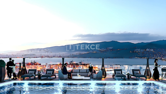 The apartments for sale in zmir are located 200 m from the metro, train, and bus stops, 250 m from the sea, 450 m from the shopping center, 2 km from Alsancak Square and Kültürpark, 3 km from Kordon Coastal Park, 20 km from Adnan Menderes Airport, and 50 km from Urla beaches.