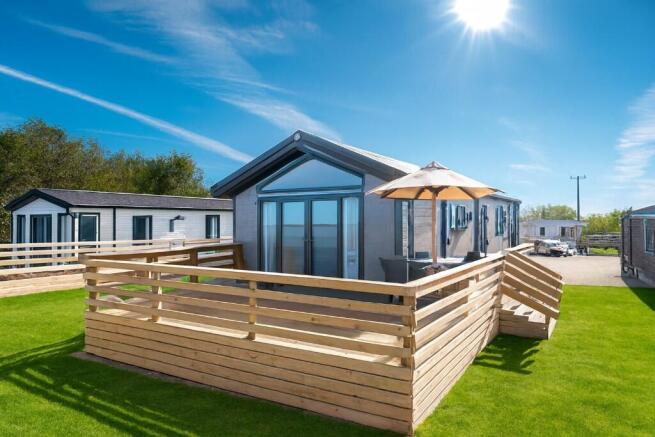 Externally the decking extends to two sides, with further space for an external storage shed (10' x 8') and two parking spaces.
