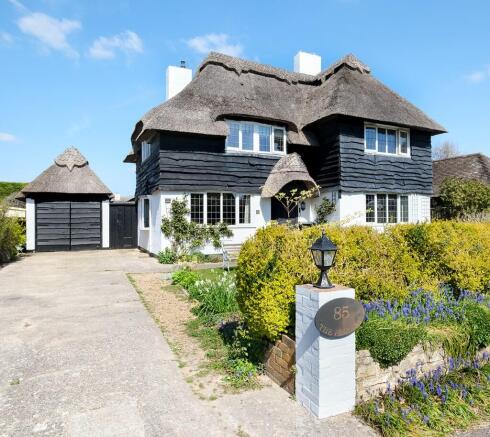 The property also offers double glazing, a gas heating system via radiators, a driveway providing on-site parking, pitched roof thatched garage with adjoining stores and delightful front and rear gardens.