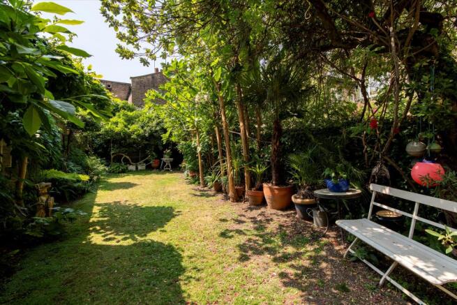 This is a rare opportunity to acquire a mature 80ft long and west-facing walled garden, with a microclimate capable of growing fruiting bananas and fig trees, it is flooded with sunlight late into the afternoon.