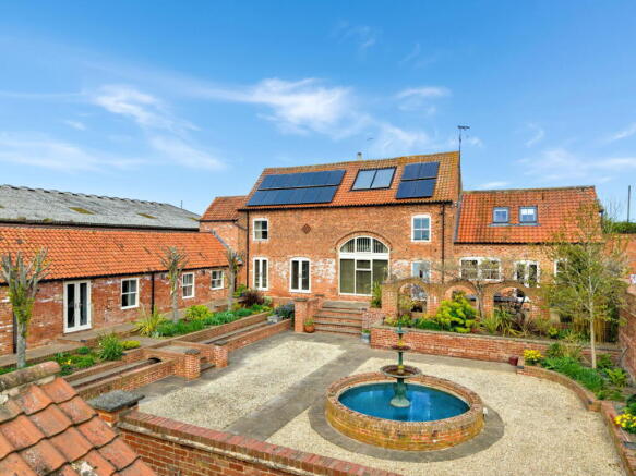 We are delighted to introduce this generously sized and elegantly designed four-bedroom barn conversion, which exudes charm and character throughout. Sitting on a 0.53 Acre Plot this unique residence artfully blends traditional and modern elements, resulting in a thoughtfully crafted, energy-efficient home with an EPC rating B. The ground floor features an entrance hall, a cloakroom/WC, and a spacious lounge/diner complete with a double-sided log burner, reclaimed pitch pine herringbone parquet flooring, and two sets of French doors leading to the courtyard. The kitchen/diner boasts a bespoke design and stunning ceiling beams, complemented by a utility room, boot room/hallway, study/office, a fourth bedroom with an en-suite bathroom, and an additional reception room that can serve as a games room or extra lounge. On the first floor, a landing leads to a vast master bedroom with beamed ceilings and a spiral staircase to the second floor, along with two additional bedrooms, each featuring en-suite bathrooms—one with three Velux windows and the other with a beautiful arched window overlooking the front. The second floor includes a landing/study, a dressing room/store room, a solar control/store room, and further storage space. Outside, the property is enhanced by a beautifully landscaped, fully enclosed courtyard garden, complete with a circular water feature, raised flowerbeds, a patio area, mature trees, shrubs, and a 0.3-acre paddock.
